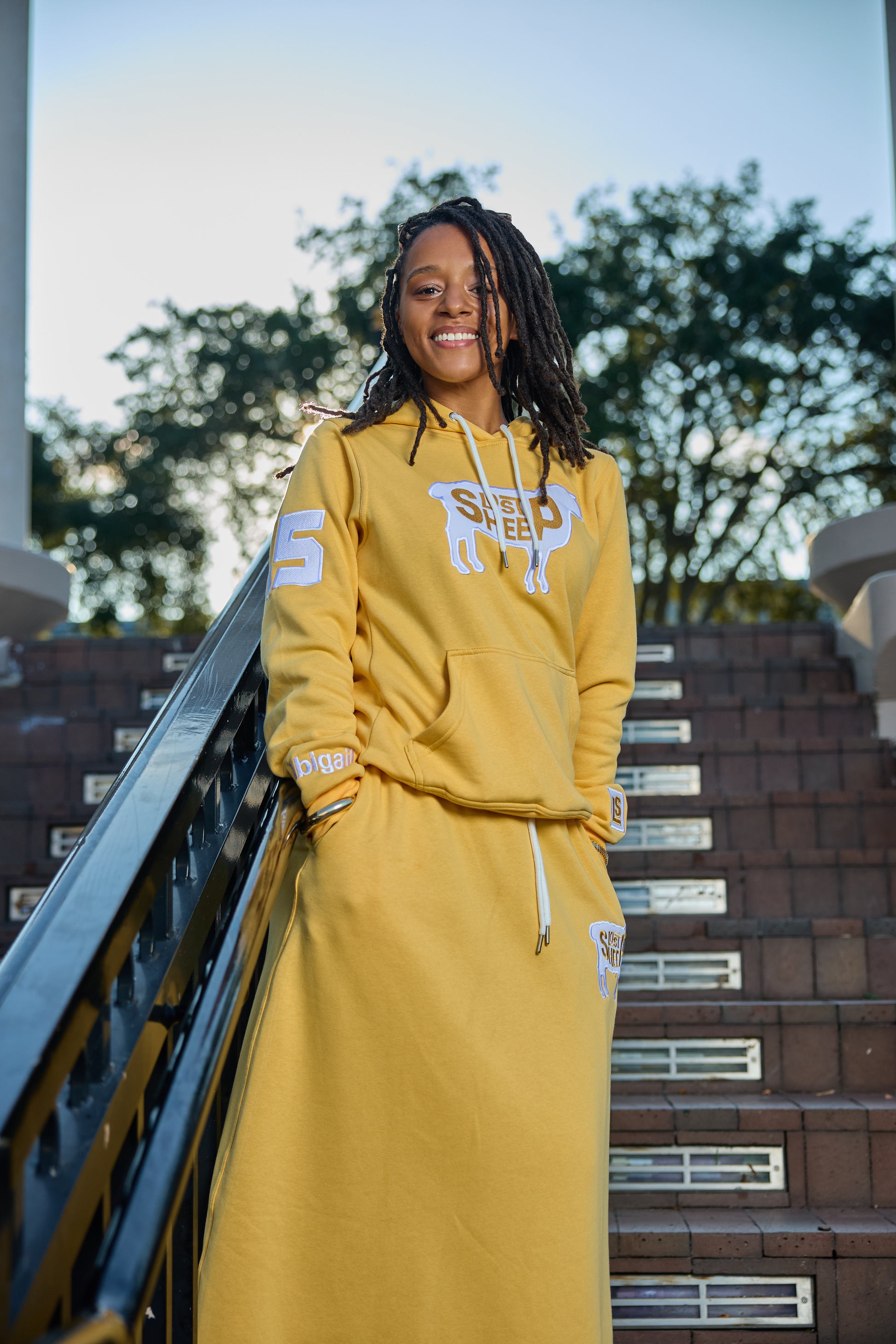 The Lost Sheep Abigail is a premium two-piece set made from 100% cotton, combining a comfortable hoodie with a modest, flowing skirt for effortless style. Featuring custom embroidery on both wrists, the signature “15,” and a bold Lost Sheep design across the chest, every detail is intentional and meaningful. The skirt includes an embroidered Lost Sheep logo and functional pockets, blending modesty with everyday practicality. A customer favorite, the Abigail has sold out multiple times and continues to receive outstanding reviews for its fit, quality, and timeless design.